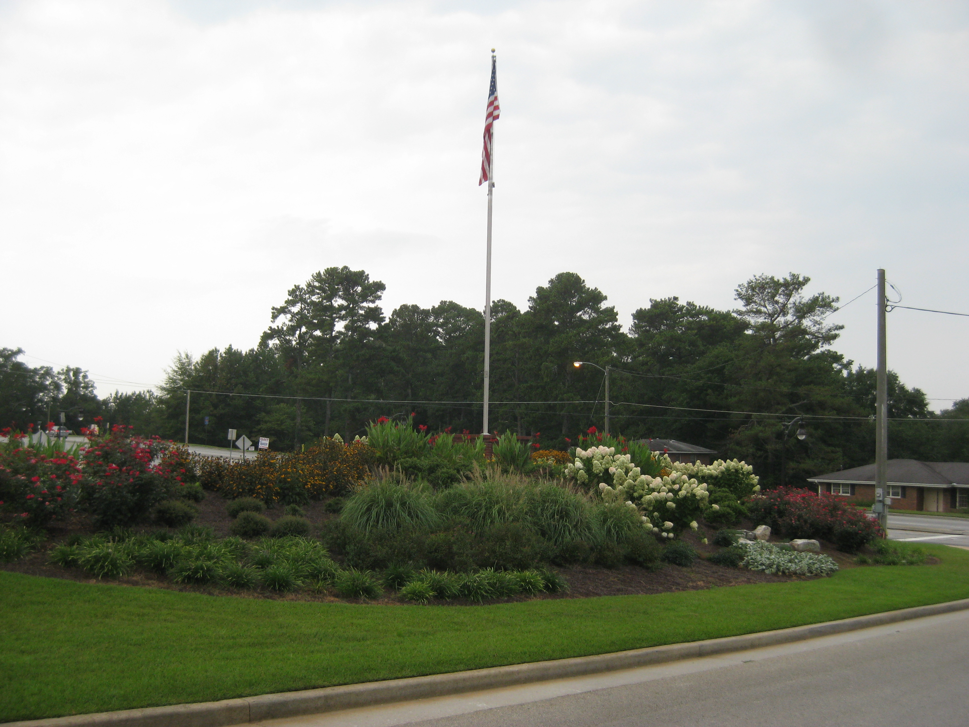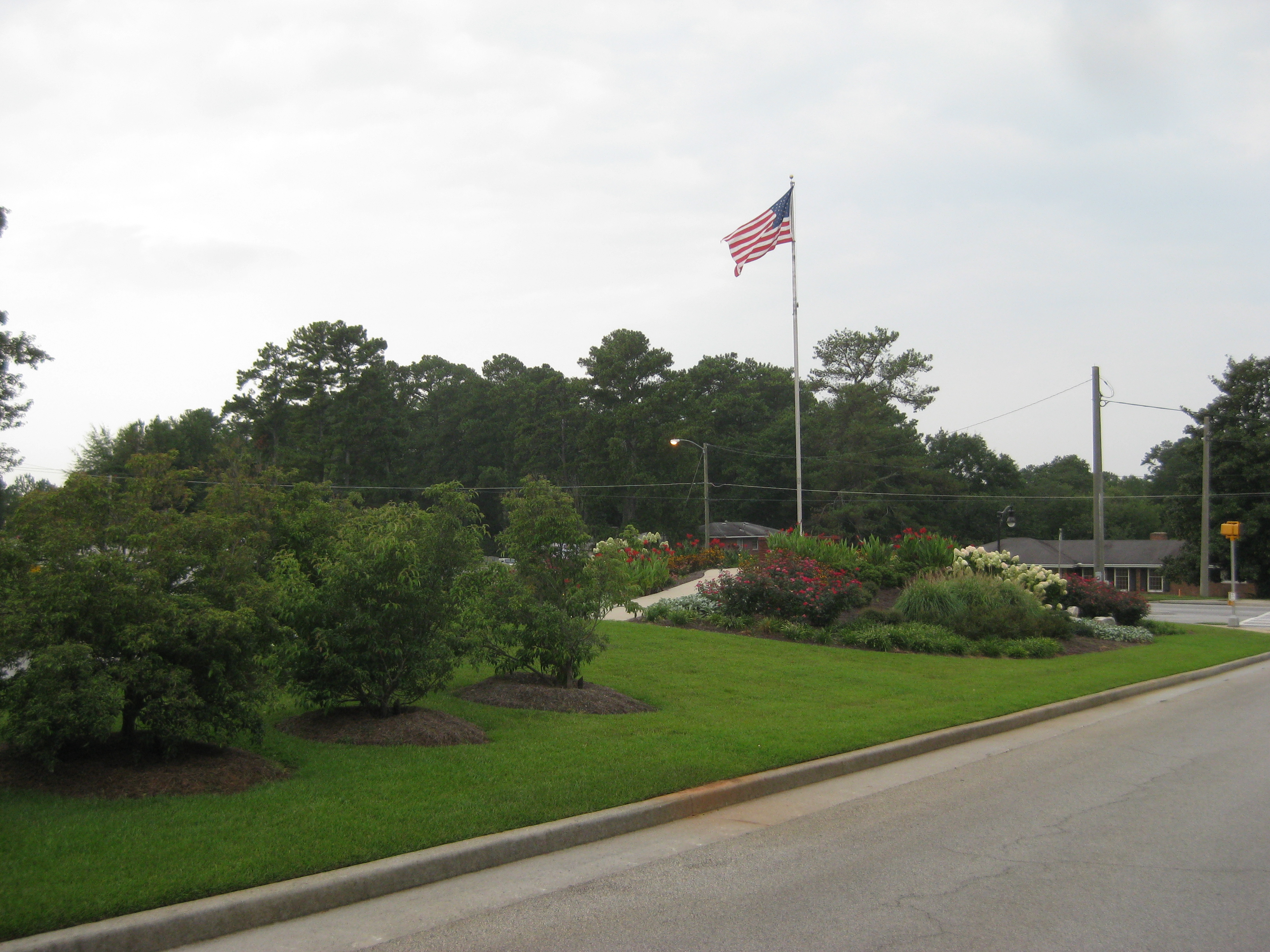 The location was chosen at the intersections of Campbellton Street, Hospital Drive and Elizabeth Dr. just north of I-20 and Chapel Hill Road exit 36. Soil was brought in to fill a storm water retention area at he intersection. The first phase included the flag pole monument, concrete walks, irrigation, lighting, centipede sod and minimum planting.